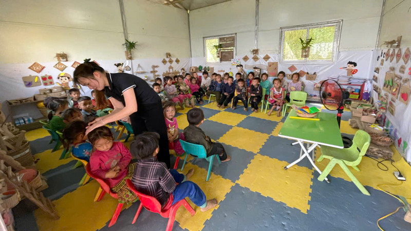 Trò chuyện với cô Lìu Thị Dịu - một cô giáo “mới toanh” của điểm trường thì được biết, cô ra trường từ năm 2017, nhưng đến năm 2024 mới thi tuyển được vào ngành. Ở trường mầm non Tủa Sín Chải, cô được bố trí vào cắm bản ở điểm trường Phi Én.